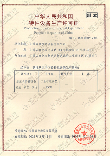 目前我公司具有建筑機電安裝工程專業(yè)承包一級資質、總承包二級、GC2壓力管道設計、施工資質?,F有高級工程師5名、高級技師55名、工程師22名、助工25名、技術員22名、各類專業(yè)技師50多名,強大的技術力量及精良的施工隊伍,為客戶提供全方位服務。 公司本著“一切為了用戶”的經營理念,“以品質求生存、以誠信贏市場、以管理促發(fā)展”為要求,努力為廣大客戶提供專業(yè),優(yōu)質、高效的服務。